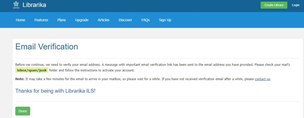 Ok. Assim que você clicar no link do email você vai ser redirecionado de volta para o librarika, vai aparecer a página da próxima imagem e você estará cadastrado na plataforma. Não saia ainda da página porque agora você precisa pedir para acessar a biblioteca do CAEP.